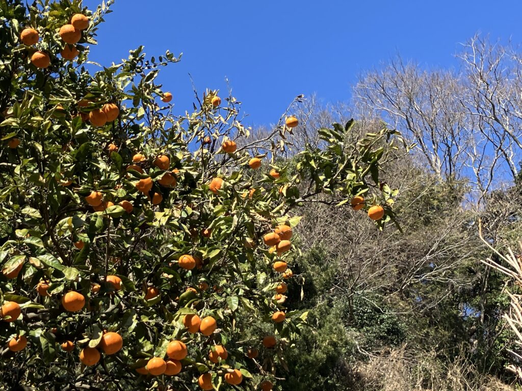 しばらく行くと右手のミカン畑に『ミカン』の幟