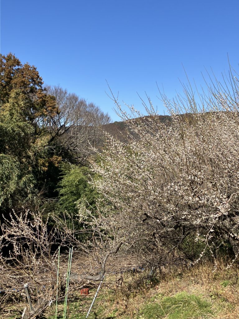 曽我梅林に下る分岐点の六本松跡には大きな梅の木がたくさん。この梅が小田原名物の梅干しになるんだなあ