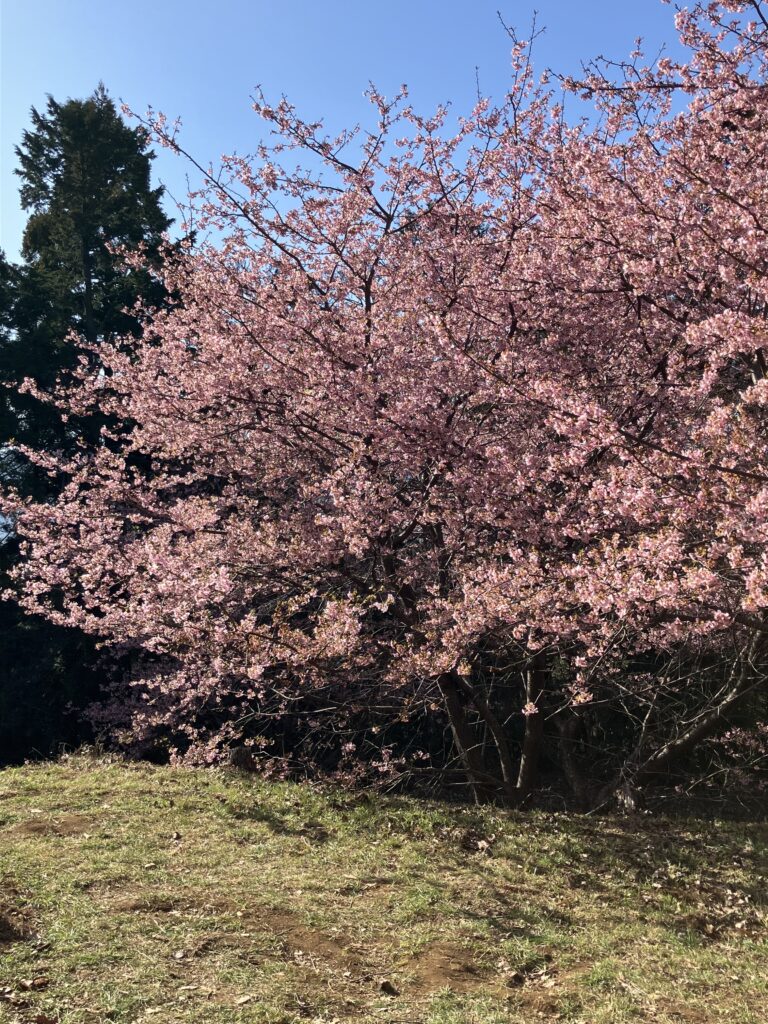 富士山を望む斜面に早咲きの河津桜が満開!