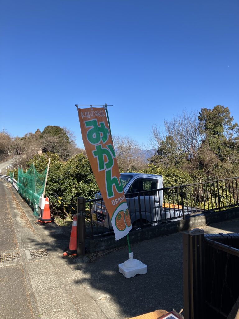 しばらく行くと右手のミカン畑に『ミカン』の幟